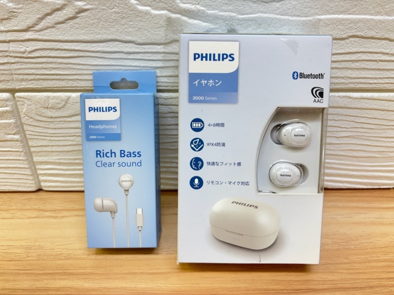 - A720 美品 動確済 フィリップス 2個セット TAT2205 防滴 防汗仕様 完全ワイヤレスイヤホン&USB-C接続 カナル型 有線イヤホン TAE2146