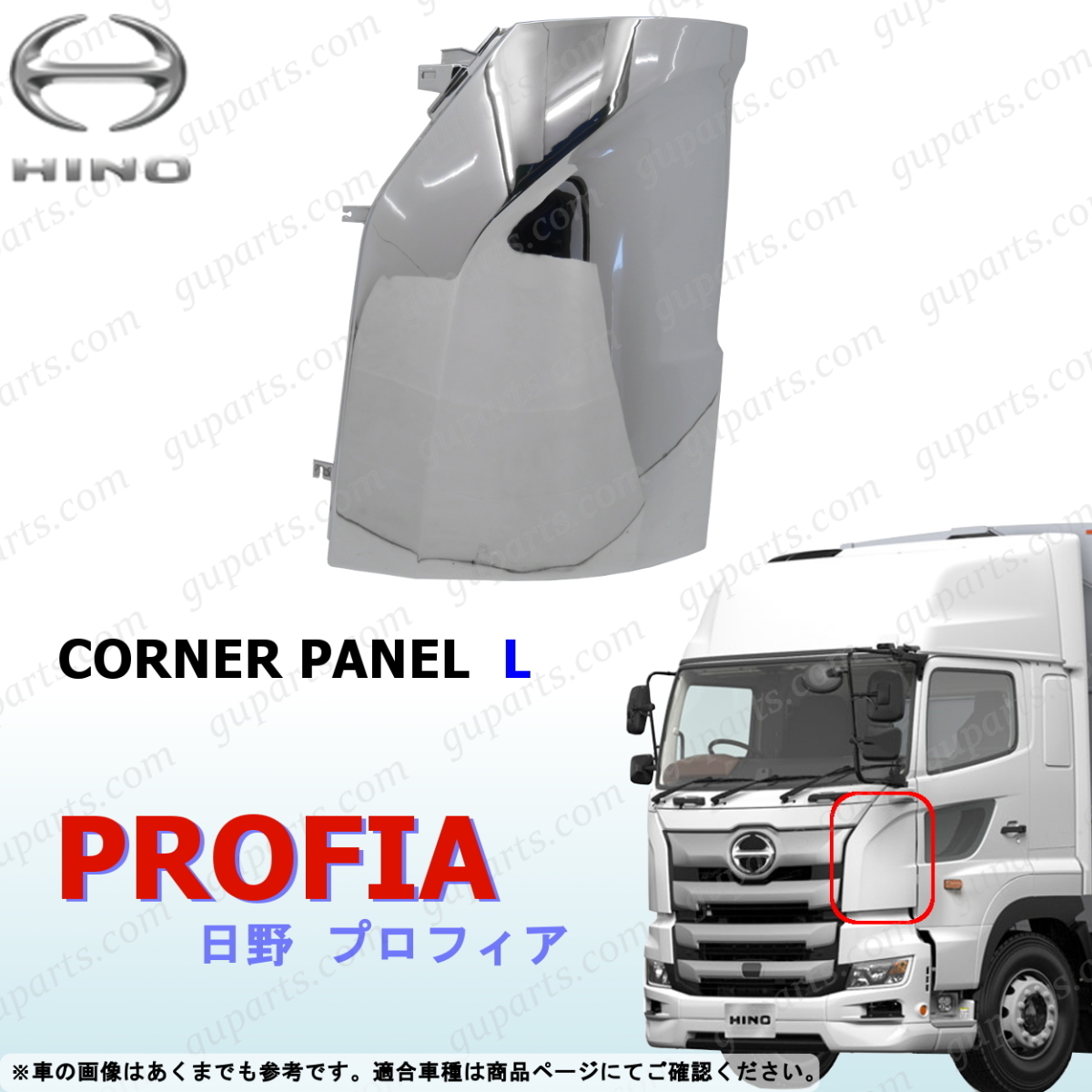 > 日野 17 プロフィア H29~ 左 コーナー パネル クローム メッキ フロント サイド カバー ガーニッシュ ベン カスタム デコトラ エアロ