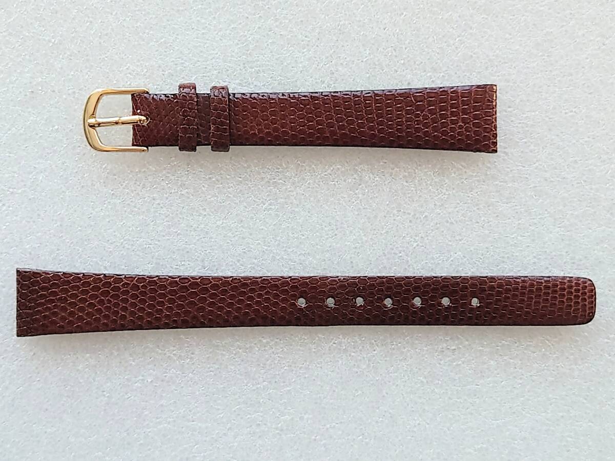 - ロングサイズ■高級トカゲ革バンド寸長サイズ : 抗菌防臭&撥水加工■時計本体側取付幅14mm尾錠幅9mmカラー茶色■金色尾錠金具付き
