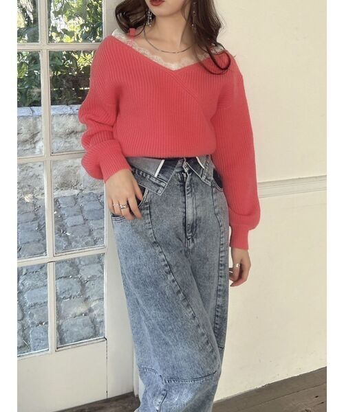 - 新品 dazzlin ダズリン レースレイヤードオーバーニットトップス