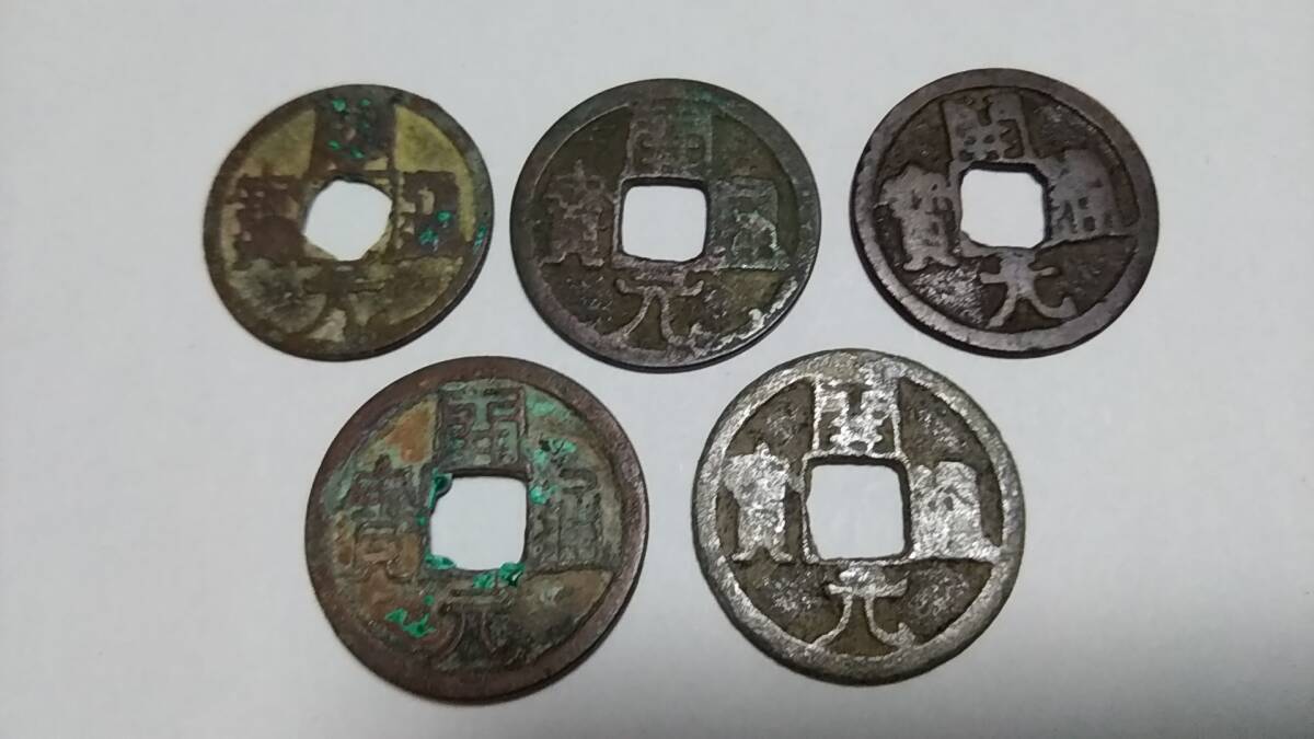 - ☆☆【中国貨幣・古銭 穴銭】開元通宝 唐銭/背月 両跳ね元 渡来銭 輸入銭 五代十国 5枚/コイン コレクション
