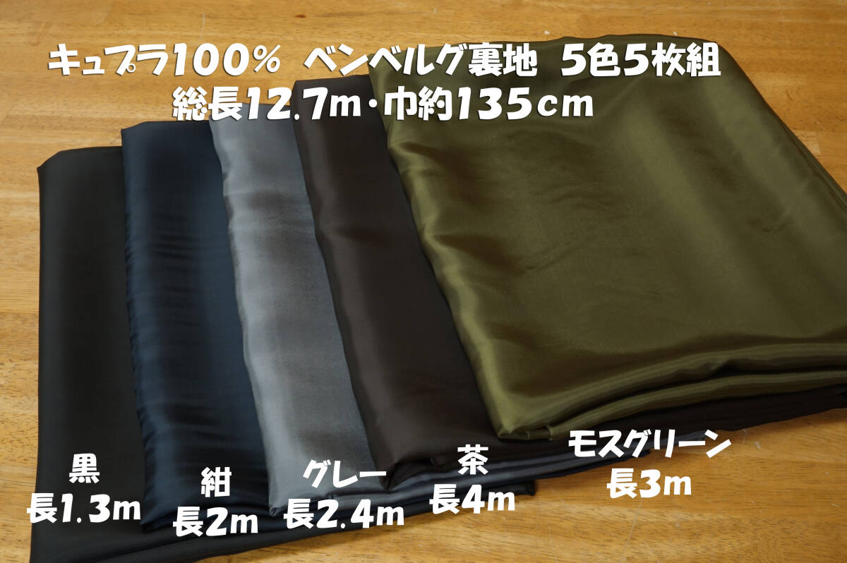 > キュプラ100% オールシーズン対応ベンベルグ裏地 5色5枚組 総長12.7m 巾約135cm ワンピース スカート ジャケット