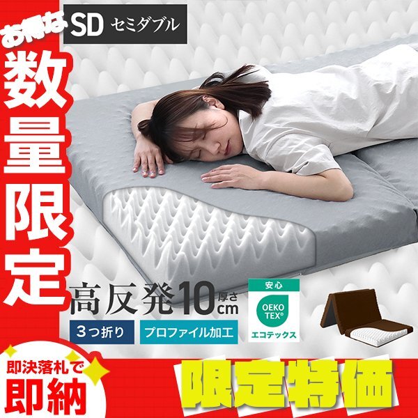 > 【限定セール】マットレス セミダブル 高反発 プロファイル加工 三つ折り 極厚10cm ベッドマットレス 洗えるカバー 腰痛 体圧分散 ブラウン