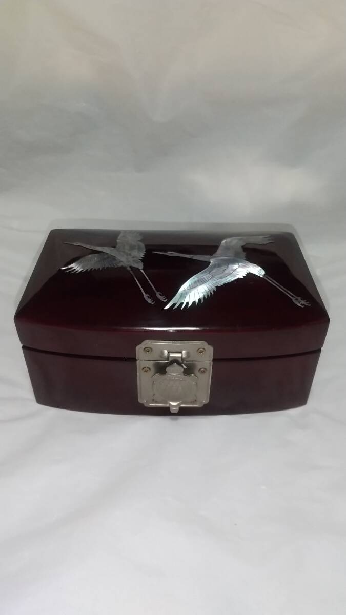 - 螺鈿 鶴 亀金具 木製ジュエリーケース USED 現状渡し