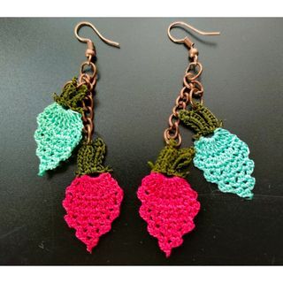 - p4 トルコ オヤ刺繍 ピアス いちご ぶどう ブルー 赤 2連
