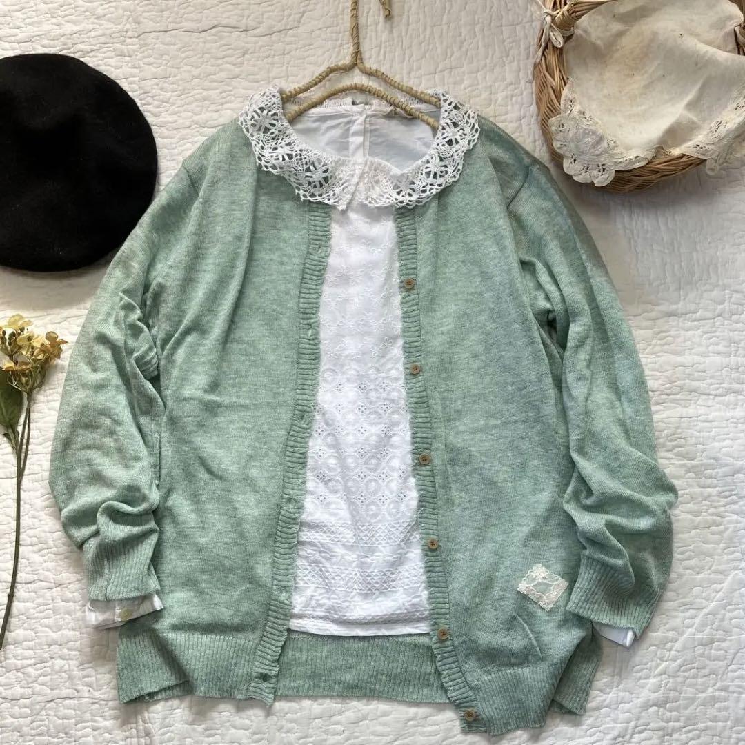 - 新品★サマンサモスモス★sm2★人気定番*クールネック*カーデガンパーツレース*グリーン*着回し力抜群