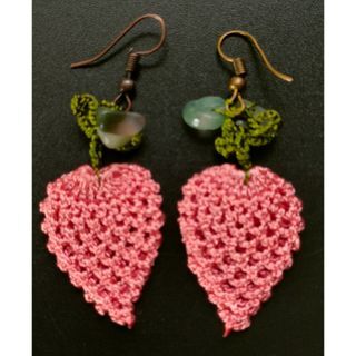 - p10 オヤ刺繍 ピアス いちご ピンク トルコ ストーン フラワー刺繍