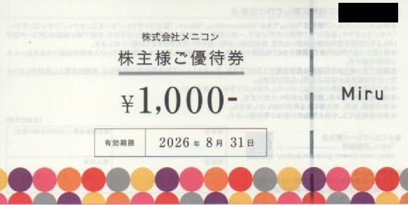 - メニコン 株主優待券 10000円分 有効期限:2026年8月31日 普通郵便・ミニレター対応可