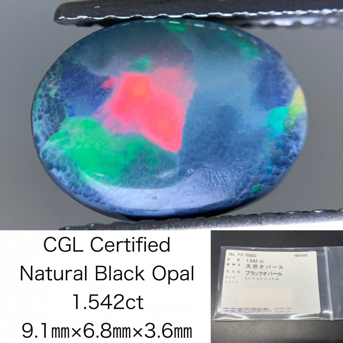 > ブラックオパール 天然 1.542ct 中央宝石ソーティング付き 9.1×6.8×3.6 ルース( 裸石 ) 6836Y