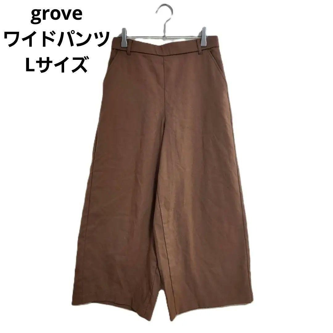 - grove ワイドパンツ ブラウン L ウエストゴム ポリエステル混 きれいめ