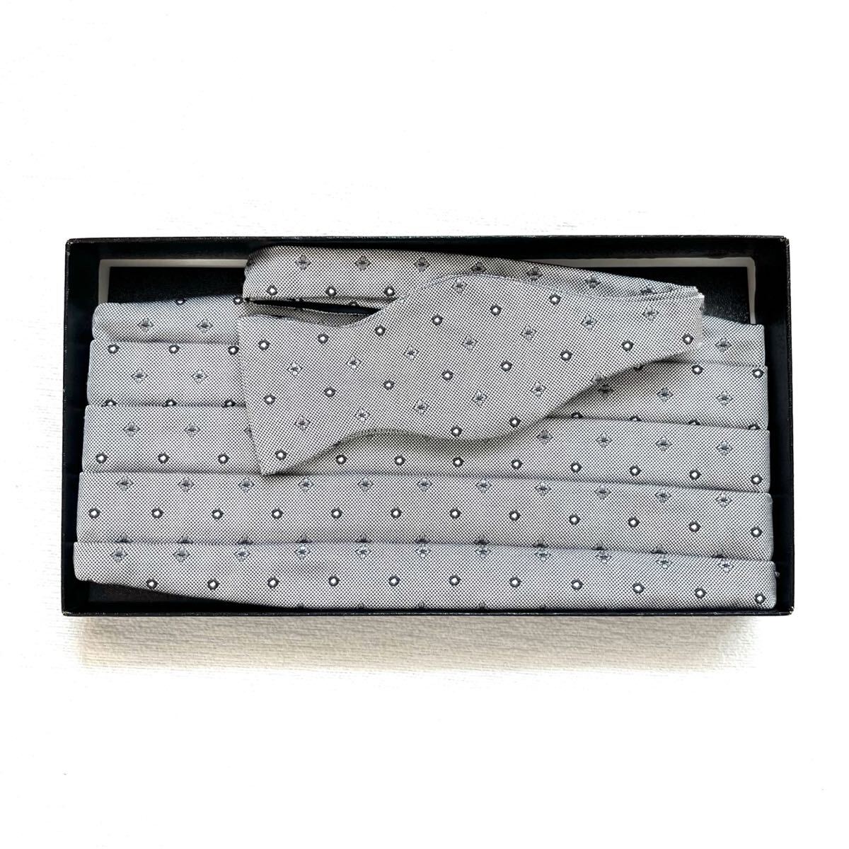 - SOCIAL ソシアル カマーバンド カマーベルト 蝶ネクタイ 礼装 フォーマル パーティー シルク 絹 日本製 シルバー パターン柄 紳士 メンズ