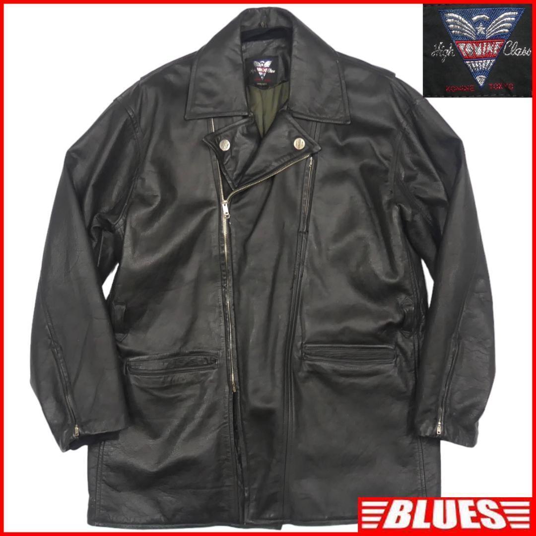 - 即決★KOMINE★メンズXL レザーライダースジャケット ライダースコート コミネ LL 黒 本革 ダブル 皮 ロング パンクロック ツーリング