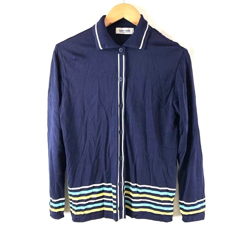 - SOFT FACE produced by love earth co.ltd. カーディガン 襟付き 裾ストライプ ボタン 長袖 ネイビー 2025090100063