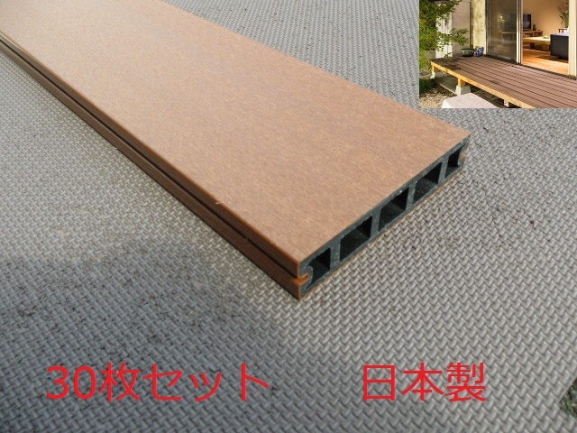 - b【直接引取限定】30枚セット 日本製 人工木ウッドデッキ材 PREPLUS プレデッキR 145×1995㎜ ブラウン 床板 リサイクル原料