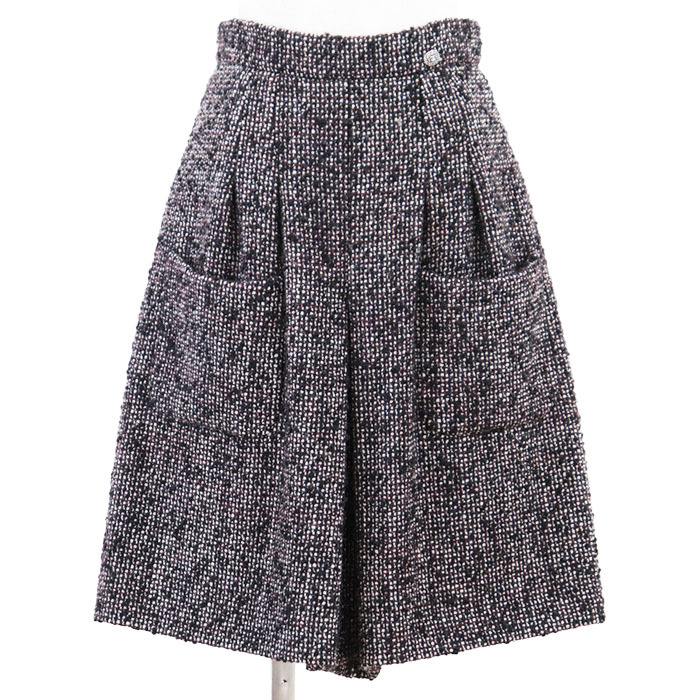 > 【美品】CHANEL シャネル ツイードスカート P44259 ロゴ COCOマークチャーム ウール × アルパカ レディース サイズ バーガンディ 黒 仏製