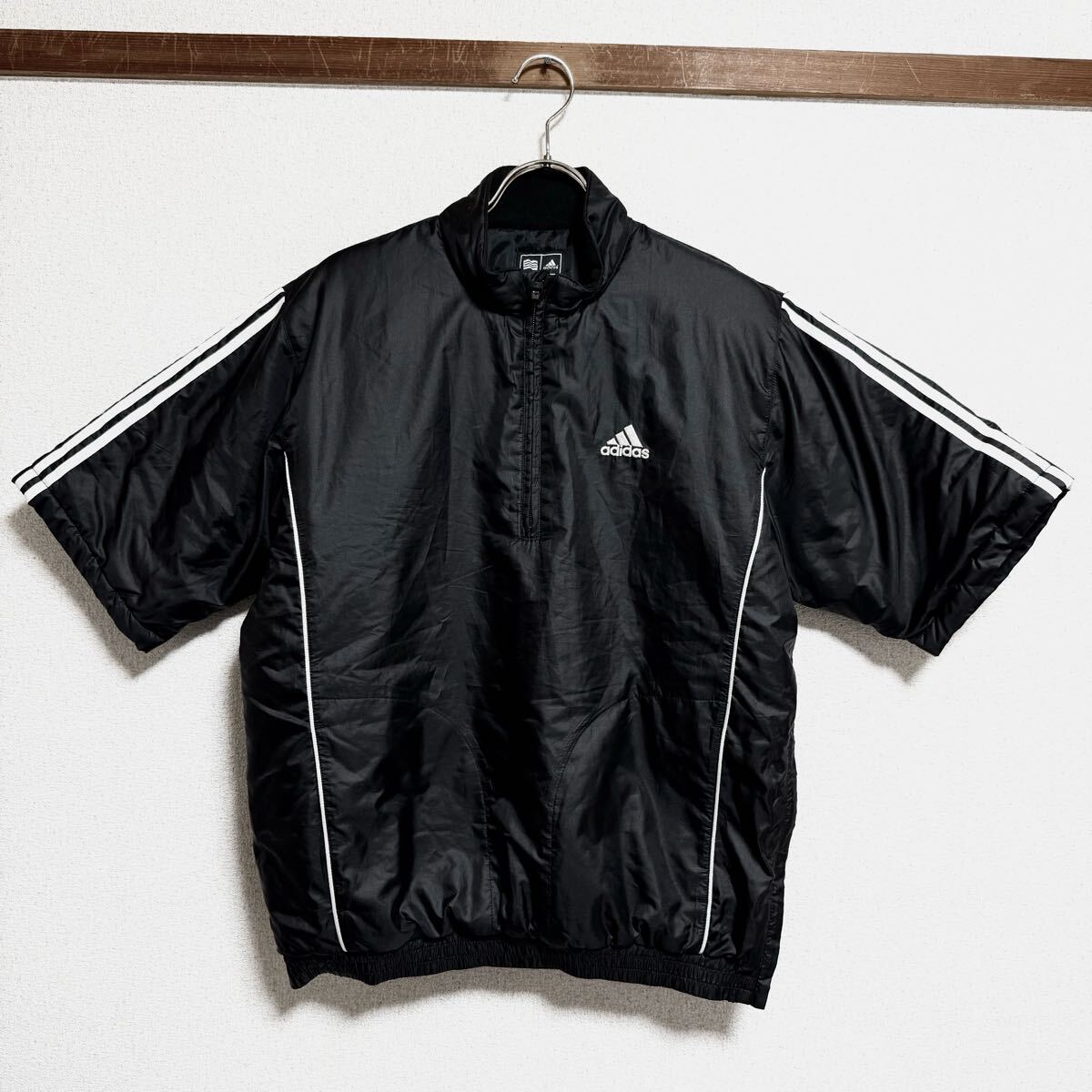 > adidas アディダス ハーフジッププルオーバー 半袖 ゴルフウェア 中綿入り スポーツウェア ブラック メンズ サイズ M *DF