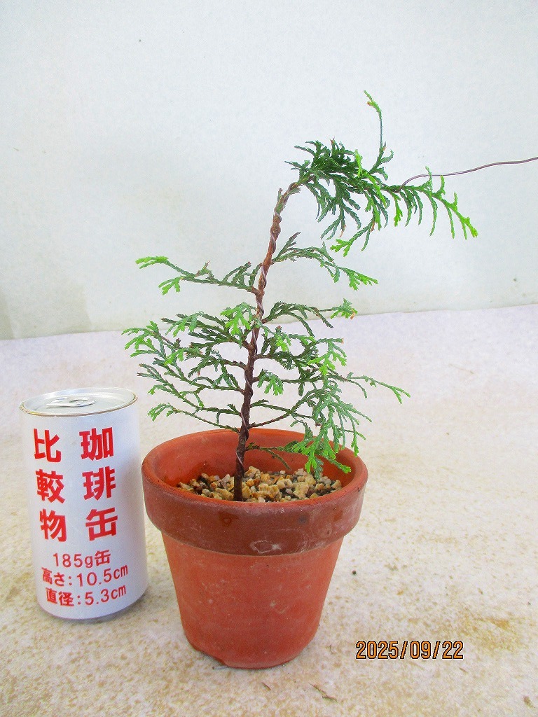 - [緑の市場] ミニ盆栽 桧(91641駄温鉢)全高:22㎝【小型送料】*同梱包対応「まとめて取引」厳守*60サイズ送料明記