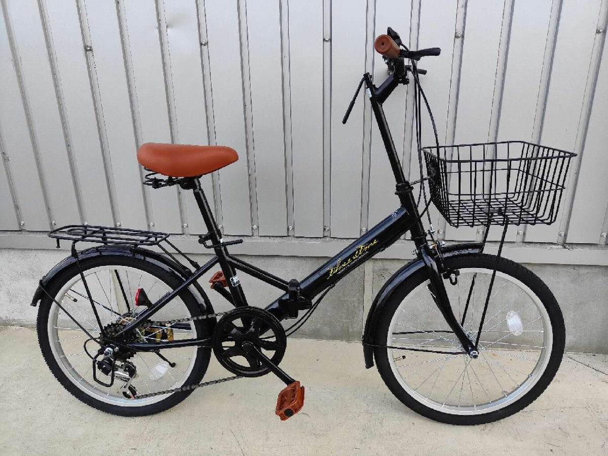 > 【アウトレット品】前カゴ&荷台装着済み 20インチ折り畳み自転車SHIMANO外装6段変速 ブラック【SK04131】
