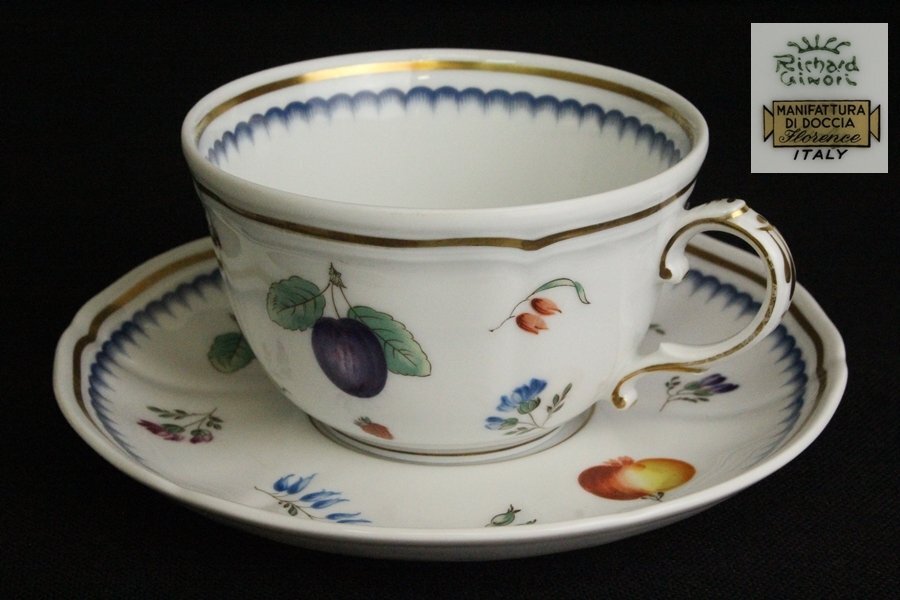 - TB526リチャードジノリ イタリアンフルーツ カップ&ソーサー◇DI DOCCIA/コーヒー/紅茶/金彩/磁器/テーブルウエア/古道具タグボート