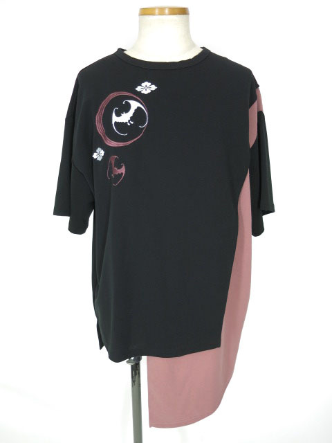 - 雅結 月夜に蝙蝠 アシンメトリーTシャツ / カットソー 和風 和柄 [B70566]
