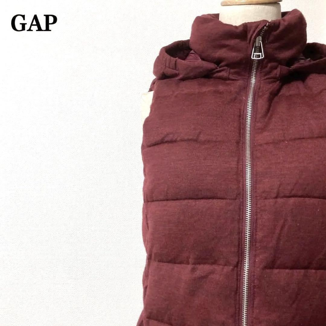 - 美品 ギャップ GAP ダウンベスト フーディー ドロストコード ボルドー ユニセックス ボリューム XS