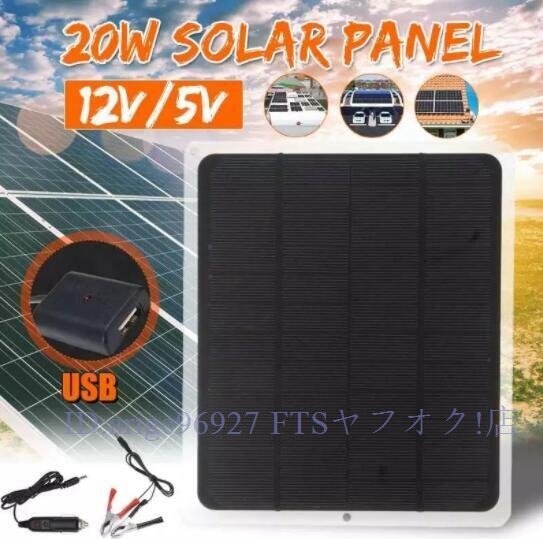 - ★新品20W 12V車用 充電器付き デュアル出力 ソーラーパネル 屋外 キャンプ LEDライト用 USB ソーラー充電器 20A