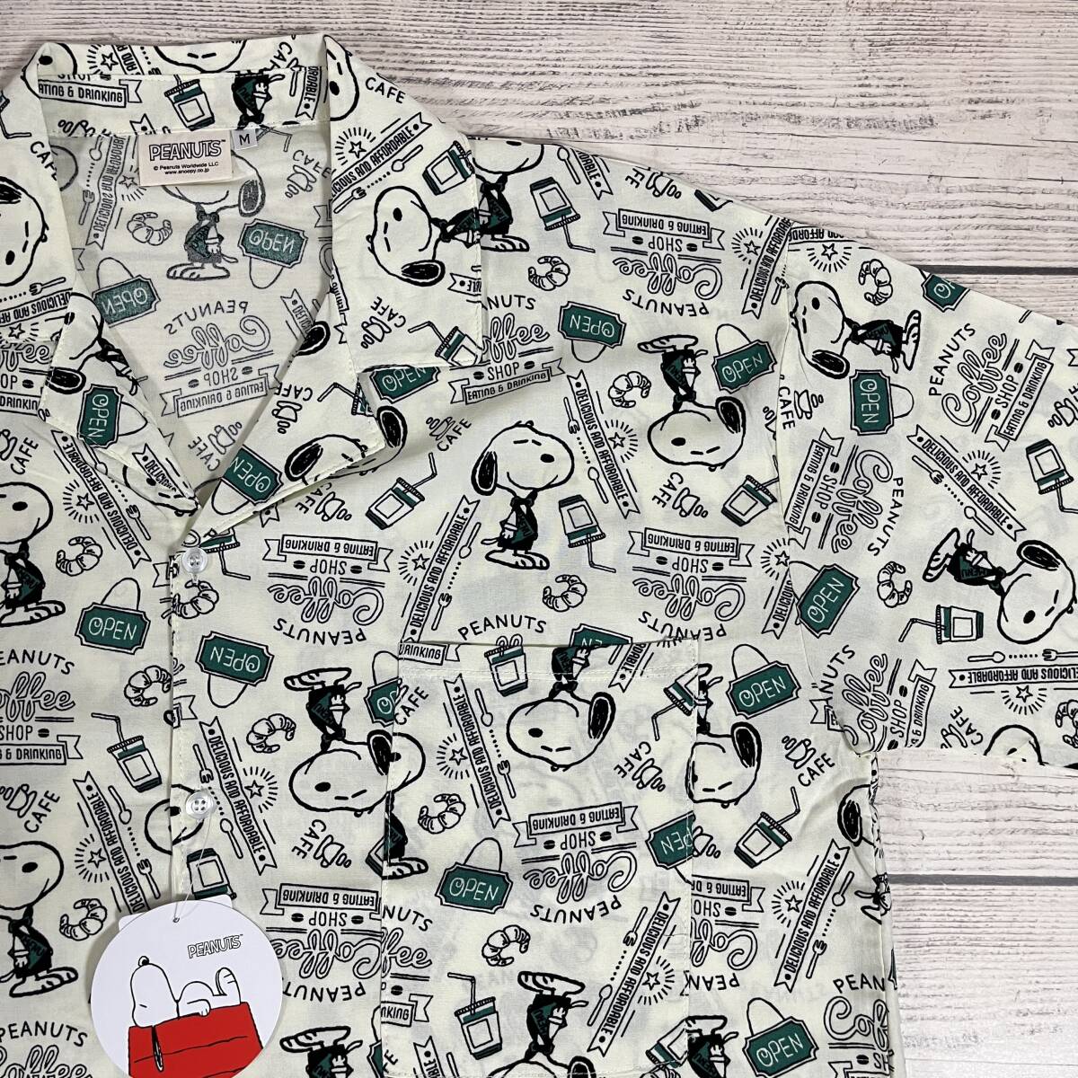 > ★ PEANUTS (ピーナッツ) ★ Mサイズ スヌーピー アロハシャツ オープンカラーシャツ 半袖シャツ バリスタ風 犬 (タグ付き新品未着用)
