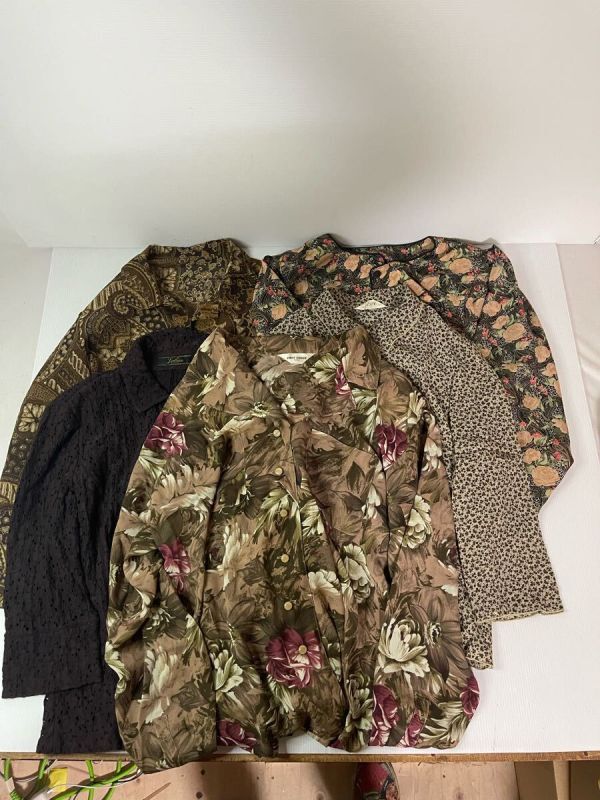 - レア vintage レディース 柄シャツ 長袖 5点まとめ売り 襟付き 丸首タイプ SM4031