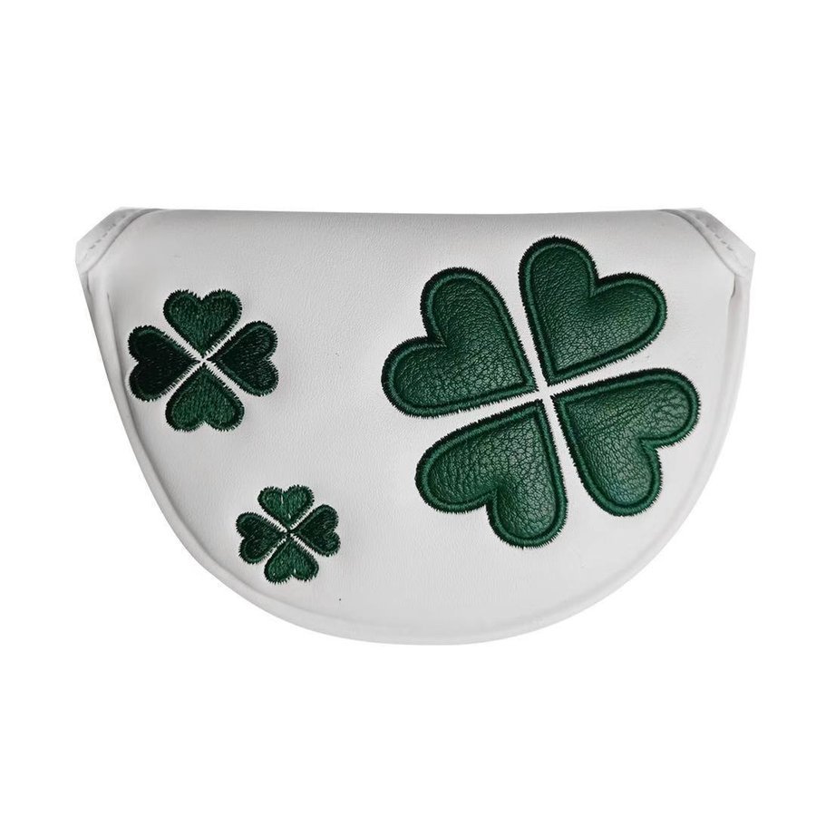 > ゴルフヘッドカバー パターカバー オデッセイに対応 小型マレットタイプ対応 マグネット付け クローバー模様 白 黒