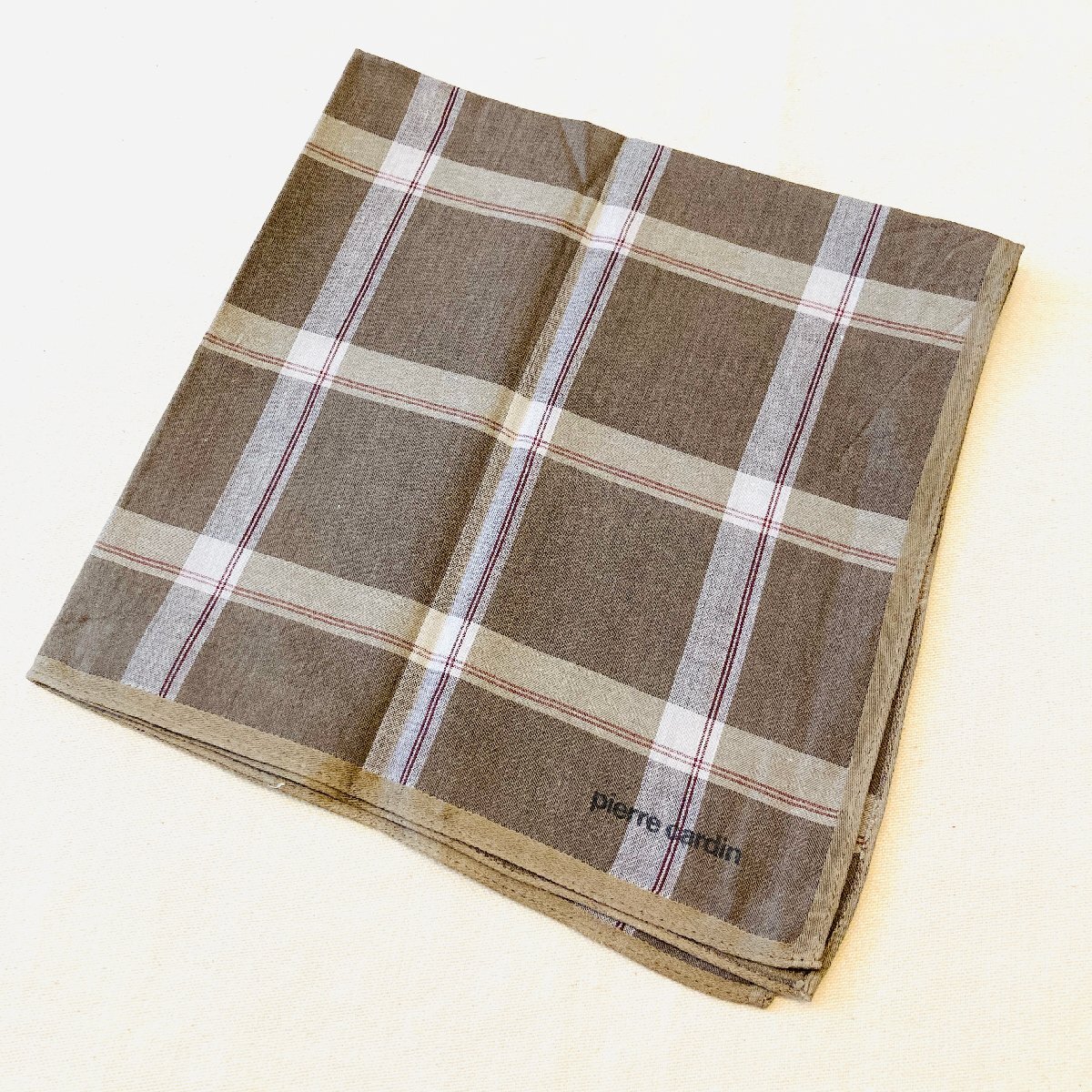 - Pierre Cardin Paris ピエールカルダン チェック シンプル デザイン スカーフ ハンカチーフ ブラウン系 40 × 40cm