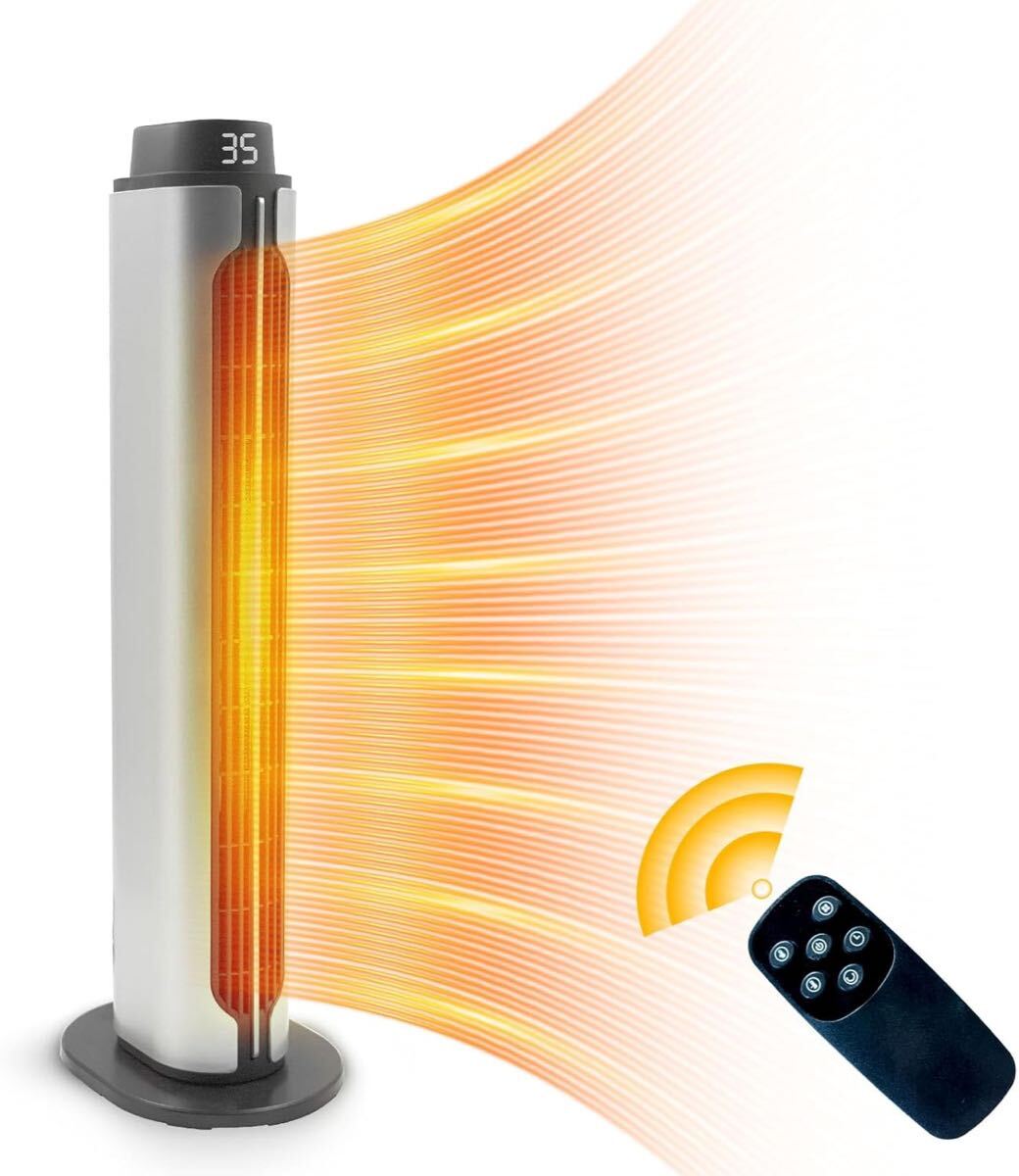 - 大特価セラミックヒーター 速暖ヒーター【2秒瞬間加熱 ECO省エネ 冷暖兼用 左右100°首振り】2~12Hタイマー機能 リモコン付 1200W