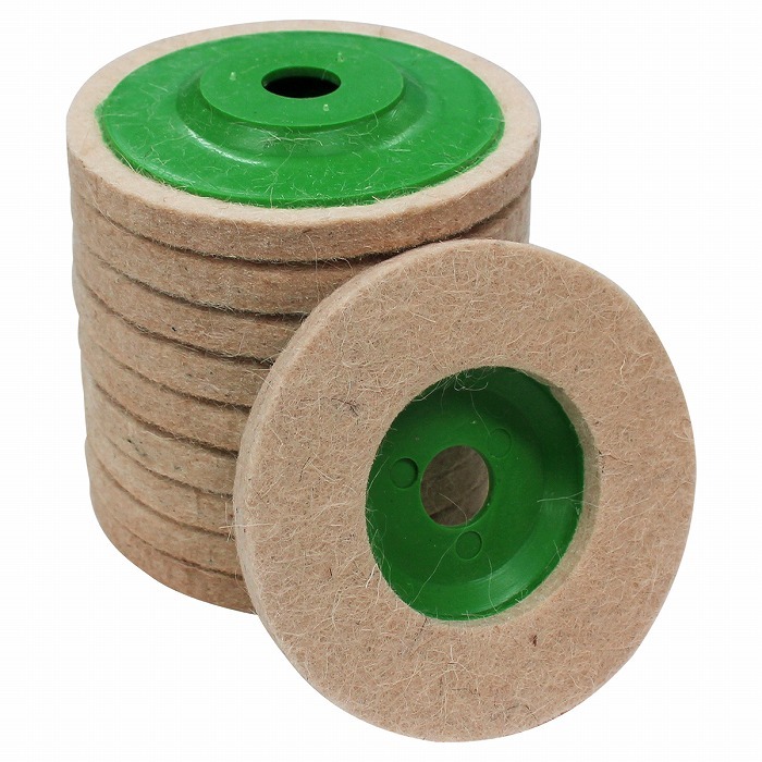 - [10枚セット] 羊毛 フェルト バフ ディスク グラインダー 100φ 10cm 100mm 研磨 鏡面仕上げ 金属 ステンレス アルミ バフ