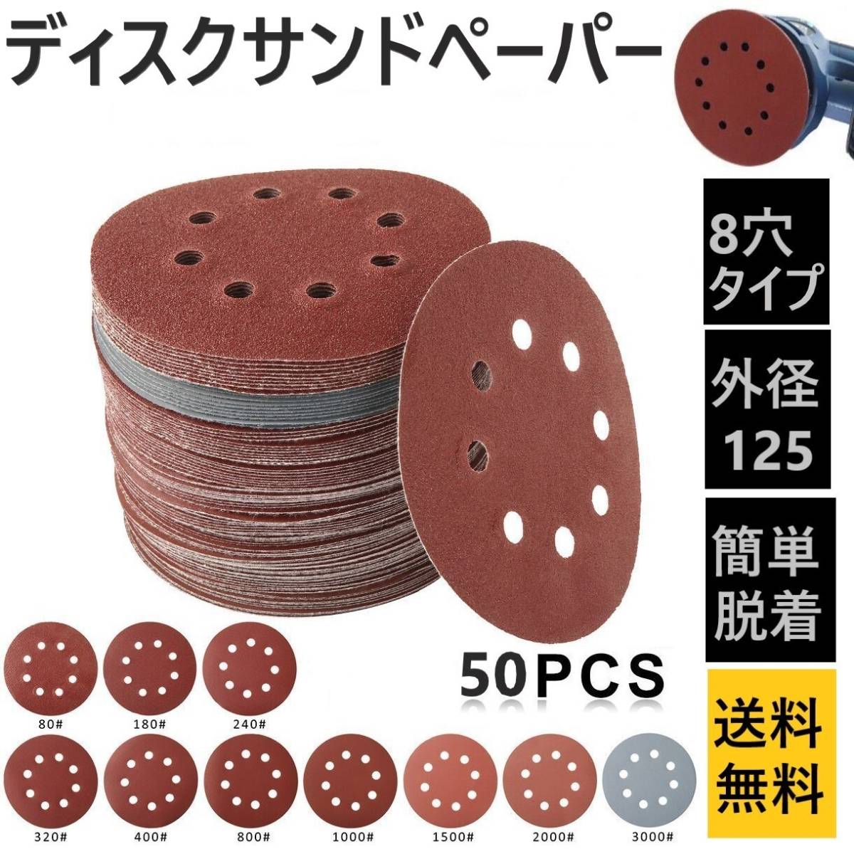 - ディスク サンド ペーパー ランダムサンダー 紙やすり 研磨 研削 加工 10種50枚 マジックテープ脱着式 グラインダー サンディング 電動用