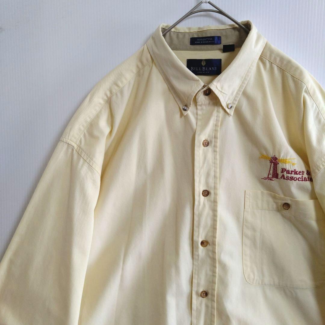 - 2544 BILLBLASS 長袖ワークシャツ XL 黄色 刺繍ロゴ US古着