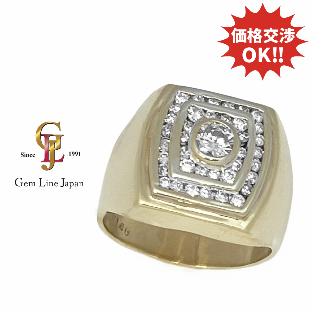 - K18 16.50g ダイヤモンド 1.40ct メンズ 印台 リング
