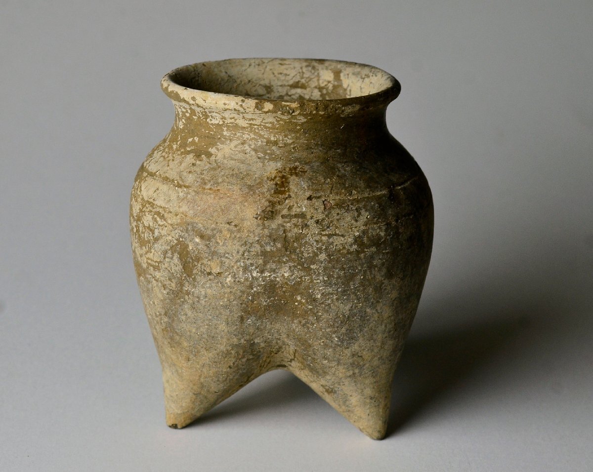 - 【YB】古代研磨土器(新石器時代・約3000年前)夏家店下層文化系の灰陶鬲(レキ)研磨土器 年代保証 紀元前6000年前後