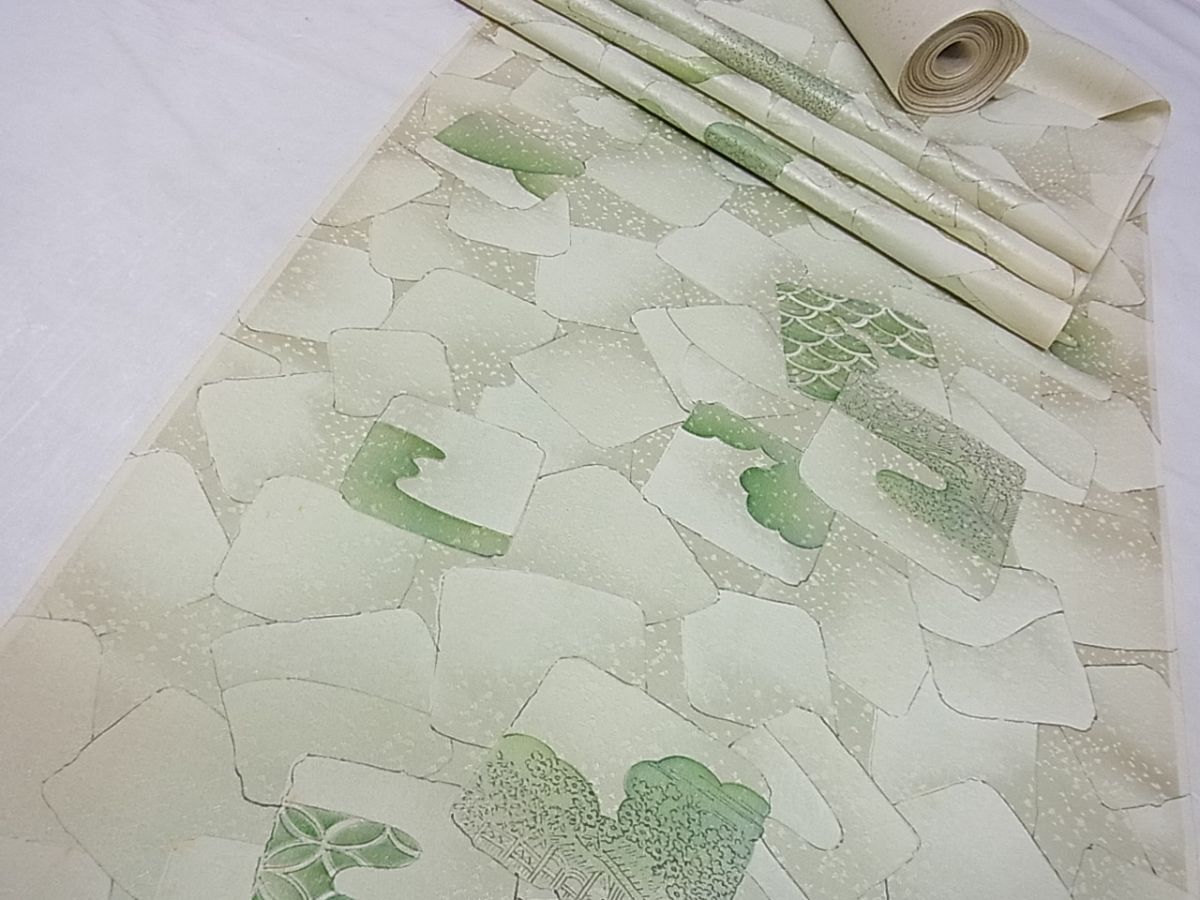 > eふれんず◆小紋 反物 着尺 色紙風景文 丹後縮緬 正絹 未使用品 未仕立て◆bm1712