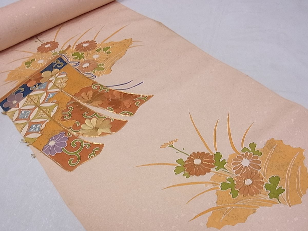 - eふれんず◆訪問着 反物 着尺 駒刺繍 几帳花文 丹後縮緬 上代12万 正絹 未使用品 未仕立て◆bm1679