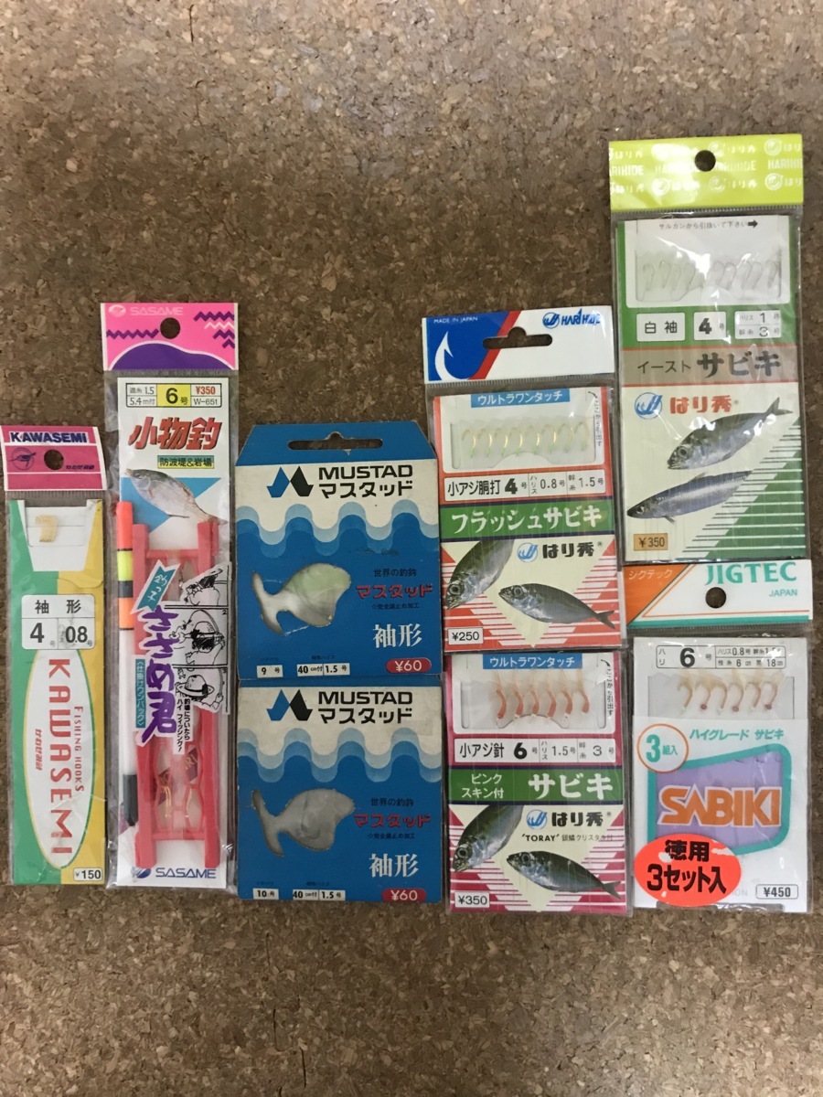 - 袖形 4号/ 小物釣6号/ マスタッド袖形 9 10号/ はり秀(小アジ胴打 4号)(小アジ針 6号 スキン)( イースト 白袖4号)/ 徳用6号 3組 8種 sa-21
