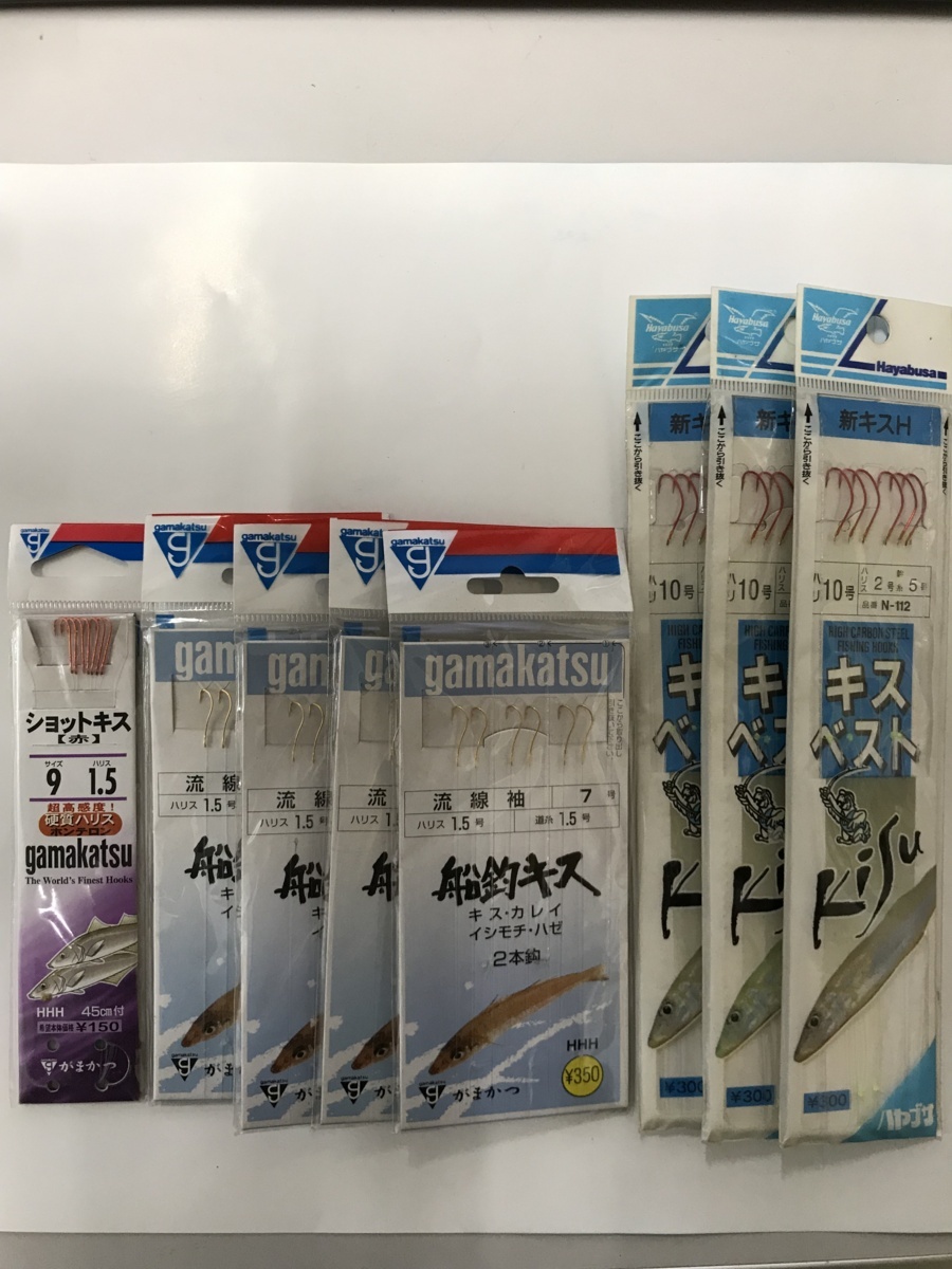 - [ キス]① がまかつ ショットキス 赤 9号② 船釣 キス仕掛 流線袖7号③ ハヤブサ キスベスト 10号 3種8点 送料無料 sa-32