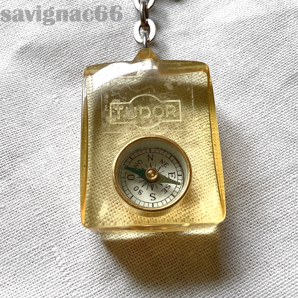 > 60年代 フレンチキーホルダー アクリル TUDOR コンパス 方位磁針 ★ 60s フランス vintage 時計 アンティーク ブルボン チュードル 企業物