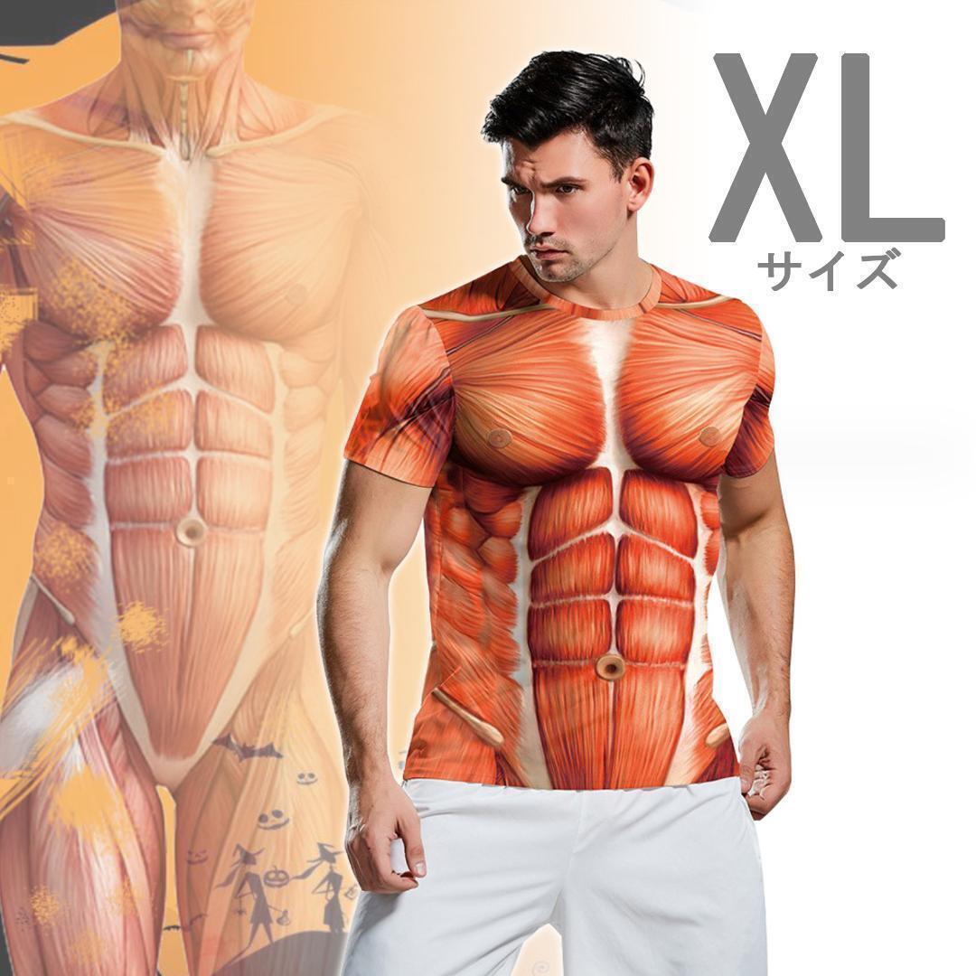 - 筋肉 半袖 Tシャツ 宴会 コスプレ 仮装 面白 派手 おもしろ (XLサイズ)