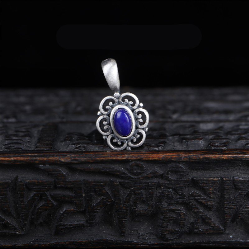 - 送料無料!中国 チベット 密教 s 925純銀 花 天然石 青金石 ペンダント 仏珠配 手串配 高品質 裝身具 護符開運 風水 お守り 厄除け fgcq135