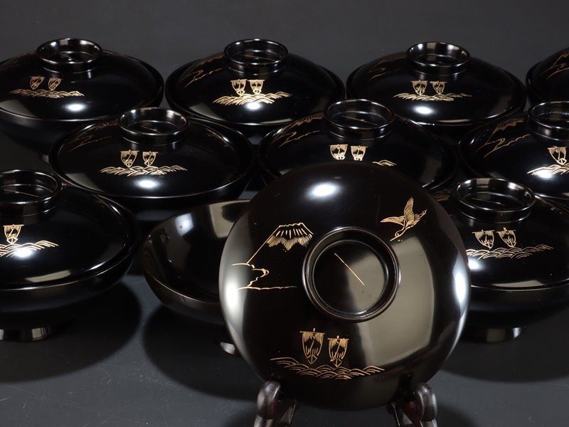 ■【夢讃岐】木製 見返し沈金・菓子椀/平椀 10客揃(蓋10枚)Φ130 H55 wa963 ■ 商品詳細 御覧頂き、ありがとうございます。 【夢讃岐】木製 見返し沈金・菓子椀/平椀 10客揃(蓋10枚)Φ130 H55 wa963 ○商品状態○経年あります。良い状態です。椀10客揃(蓋10枚)。 状態に関しては,充分に画像で確認の上、クレームの無い様に御入札下さい。 ○サイズ○ Φ--mm/高さ--mm ぐらい画像参照ください。 ○御一読下さい○2025年で、昭和100年です。私共の扱う品は、大半の物が半世紀から一世紀以前の品です。 新品と表記しない限り,確実に経年有りますので, 新品とは違い、擦れアタリ等は有るとお考え下さい。 また細かい見落とし等も時代古物とお考えの上御容赦下さい。 気になる箇所は、画像にもアップ致しますので、ご了承の上御入札下さい。 記載・画像掲載されてない,見落としに関しては、常識の範囲で誠意対応致します。 他にも漆器をメインに出品しておりますので、ぜひ御覧下さい 。