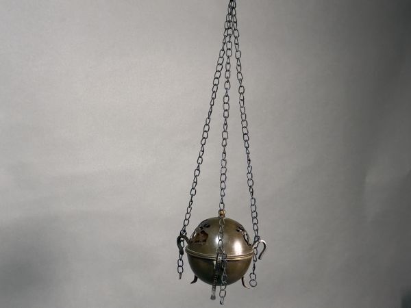 - ◎茶道具 ◎ 吊り香炉 ◎ 釣り灯 ◎金属製 ◎五三桐の葉 ◎透かし彫り ◎時代鎖