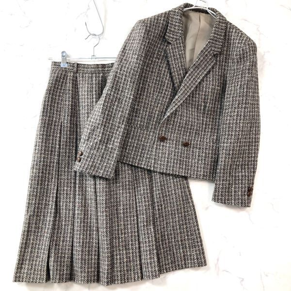 > バーバリーズ ヘリンボーンセットアップ 上下 ジャケット ロングスカート チェック柄 秋冬 レディースM ダークブラウン Burberrys B1360