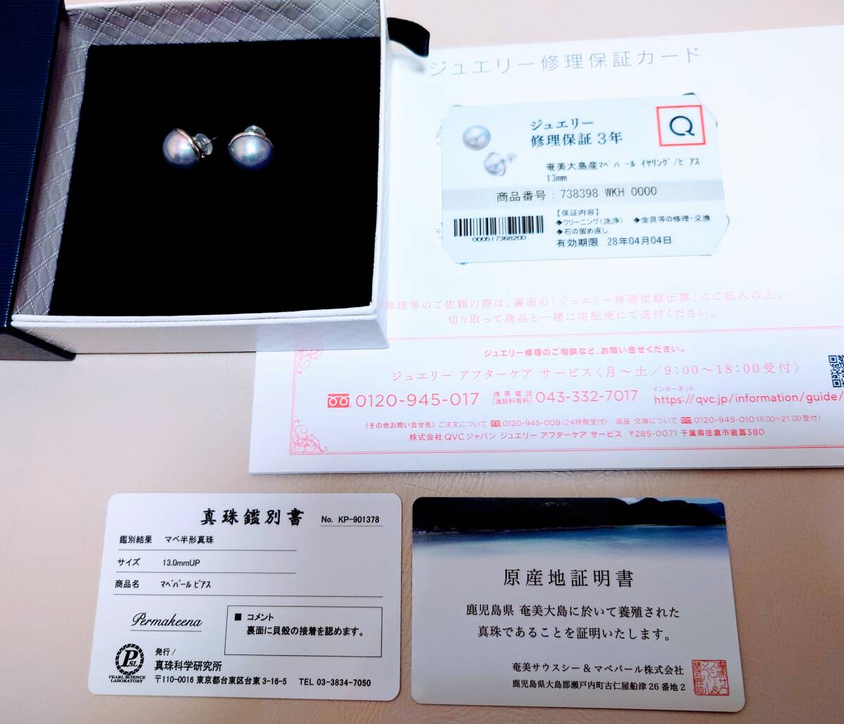 - 奄美大島産 マベパール ピアス 13mmUP PTプラチナ 真珠鑑別書付 原産地証明書付 修理保証付 新品 未使用 送料無料 ペルマキーナ QVC