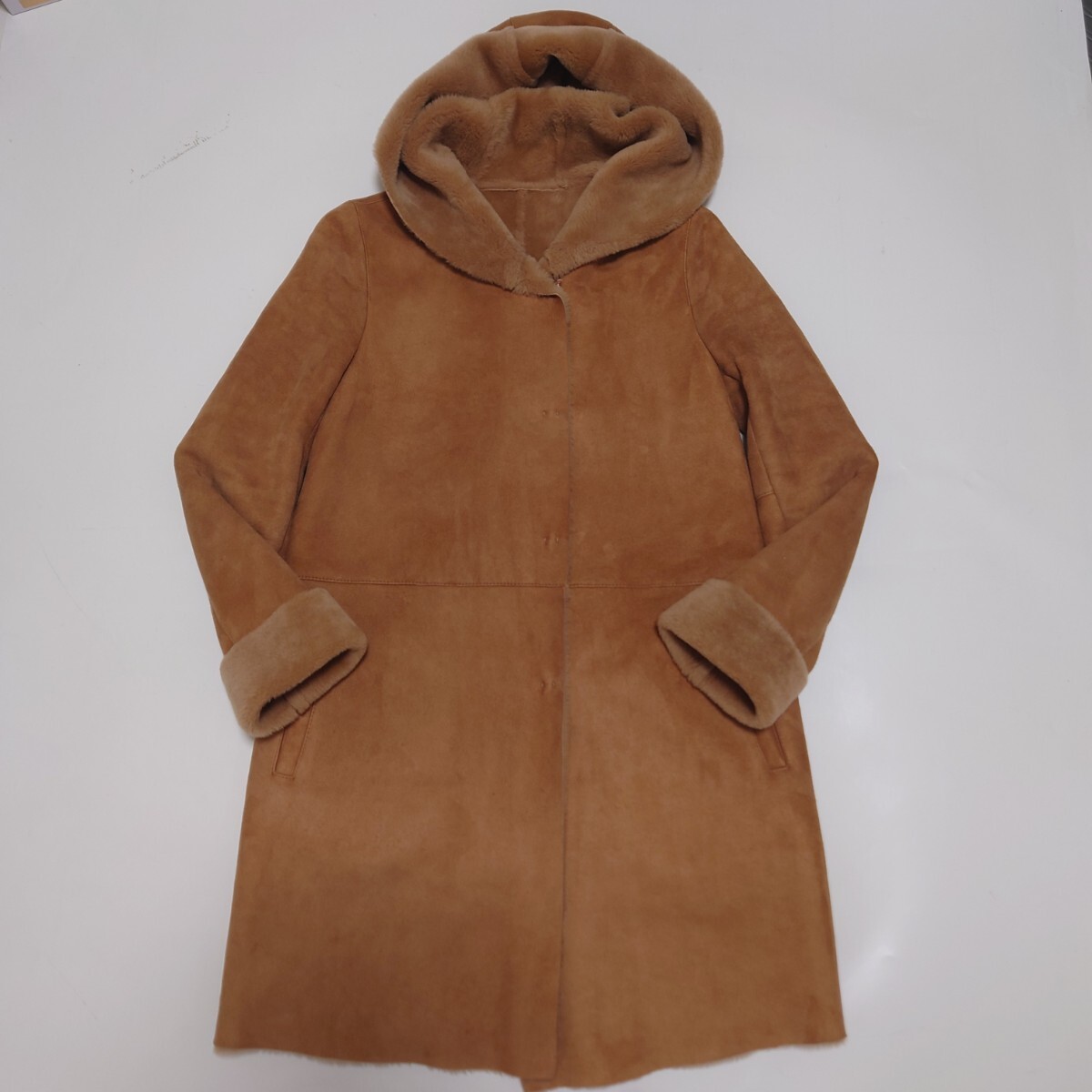 - トスカーナムートン フォックス リアルムートンコート フード付 毛皮 羊革 XS