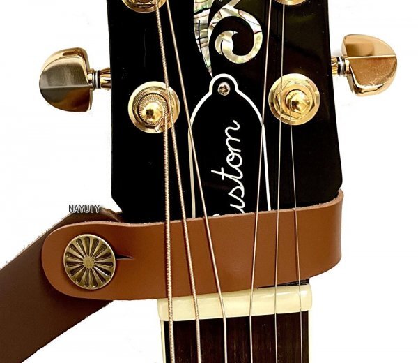 - 上品な作りのギターヘッドストックストラップ BRN ギターネックストラップ ヘッドストックループ ヘッドストックボタン アコギ エレアコ