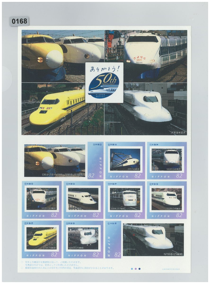 ●0168 フレーム切手 東海道新幹線 開業50周年 ドクターイエロー 82円×10枚 シール・プレミアム記念切手 〒3